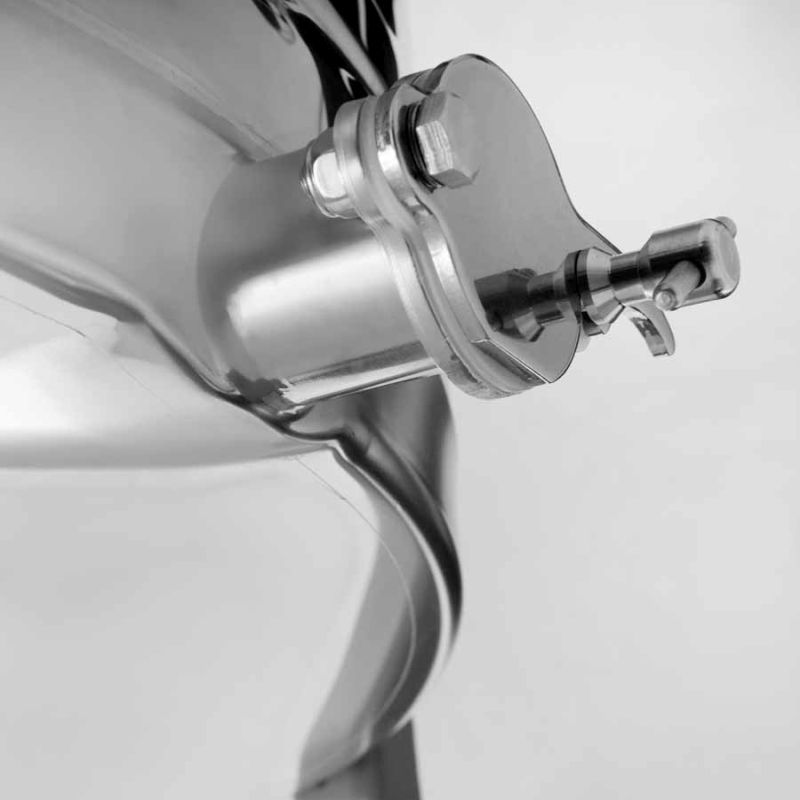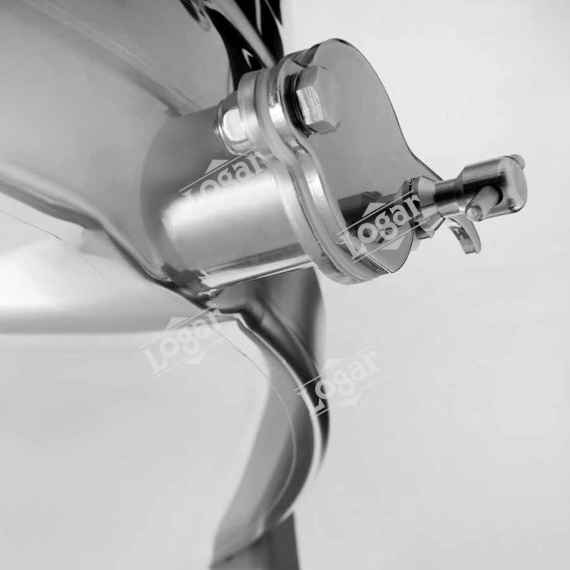 - Honey outlet: welded at the lowest possible point – 2 honey outlets / Ø = 1x Ø 38 mm + 1x Ø 42 mm